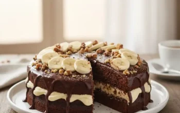 Nakon hlađenja, skinite obruč i premažite tortu preostalim braon filom. Ukrasite po želji, šlagom ili čokoladnim ukrasima.